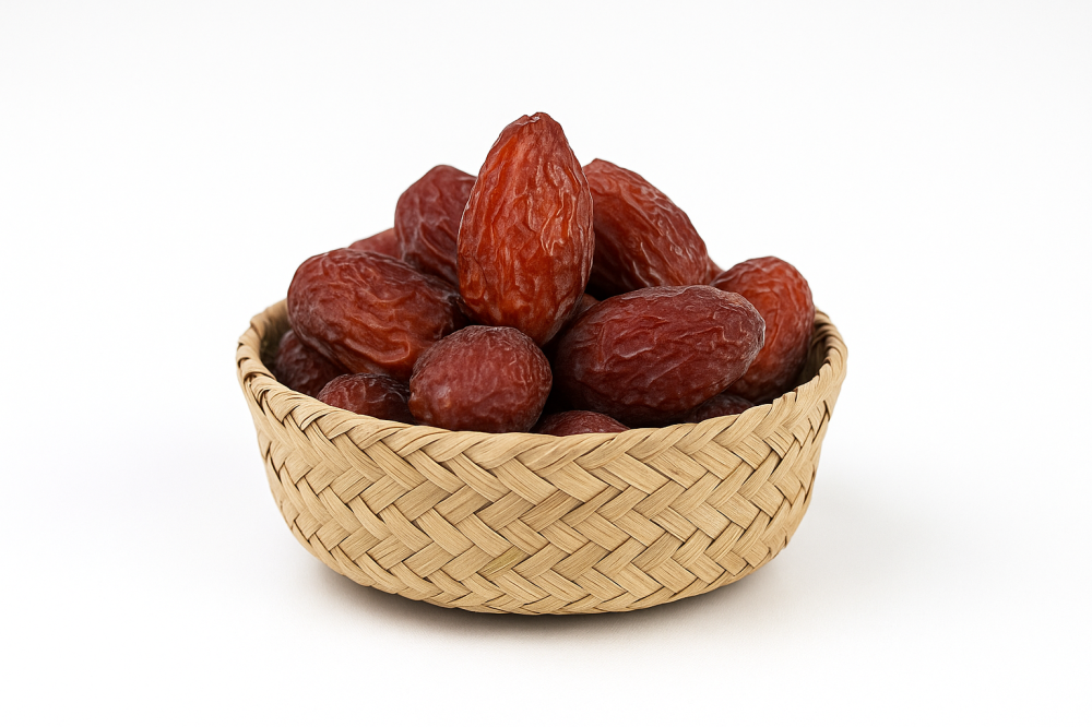 تمر فاخر يتميز بحجمه الكبير وقوامه الطري والمليء، مع طعم حلو غني يشبه الكراميل.